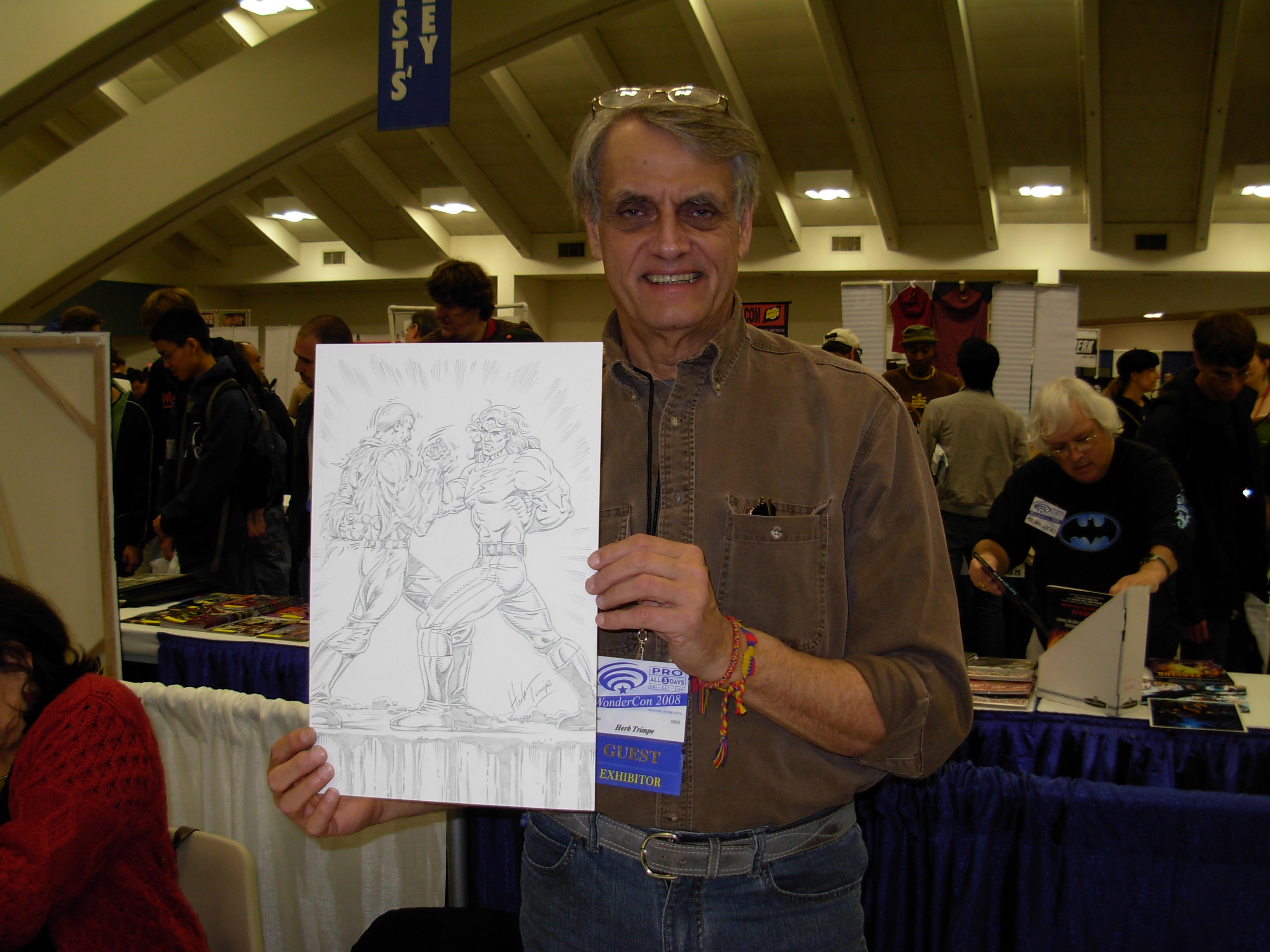 Some three years after this commission was completed, I connected in person with Herb at a local comics convention. It was a rare treat to be able to thank him, face to face, both for this particular artwork and for all of his creations that I’ve enjoyed over the years. Herb even posed with his masterpiece for this photo.